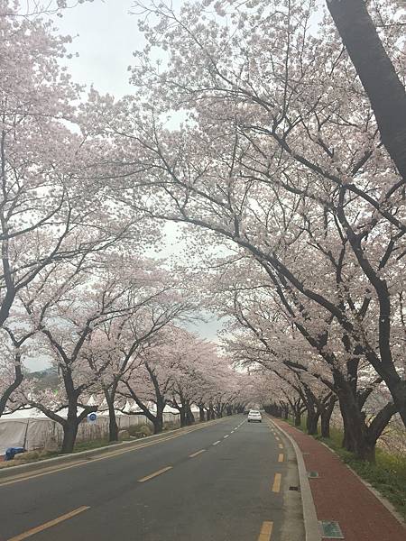 這條櫻花道蠻長的 位於慶州市外巴士客運站附近