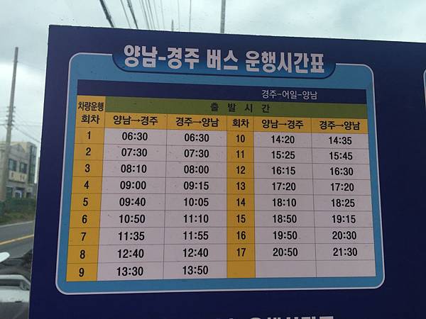 9點回旅館放腳踏車 走回旅客服務中心對面公車站牌搭前往陽南(양남)的公車